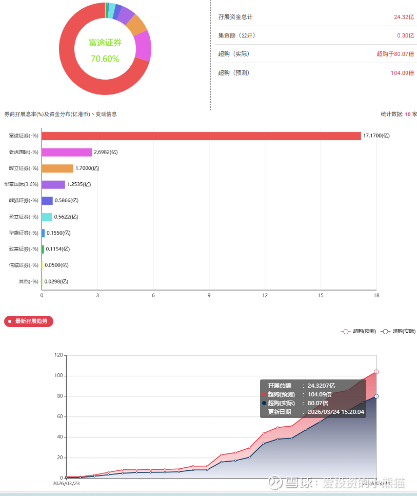 这个票如果是看基本面,那基本上没啥好看的了。而且这个票发行市值44.80-56.00亿港元,H股市值44.36-55.44亿港元,离港股通门槛差1.5倍多点,小票靠炒作咯,募资额6亿也不小,没有基石,如果孖展超过50倍,回拨20.00%,剩下的不知道谁吃得下。就这个基本面以及未来的展望,会不会有市场资金青睐于他们这就不得而知了。上一个泽景首日就暴跌了37%是真的惨!