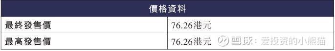 瀚天天成(02726.HK)招股最终定价76.26元,16.39亿港元的募资,324.55亿港元的总市值,H股市值90.69亿港元,上市时流通市值8.72亿港元,发行比例5.05%。