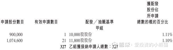 ,国配有1.95倍,一手中签率20.00%,认购40手稳中1手,同时乙组327人申购,其中顶头槌申购21张,获配率1.10%-2.25%。