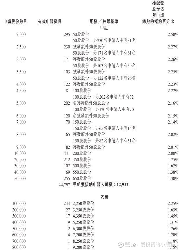 瀚天天成(02726.HK)乙组官方披露的中签名单: