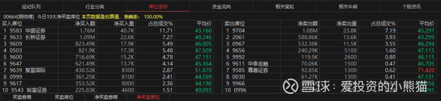 铜师傅(00664.HK)买盘席位有9583、9633、9609、0503等,卖盘第一席位是9704。