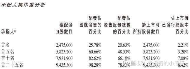 铜师傅(00664.HK)国配货是比较分散,前25大承配人上市后所持股份数目占上市后已发行股份总数9.38%。