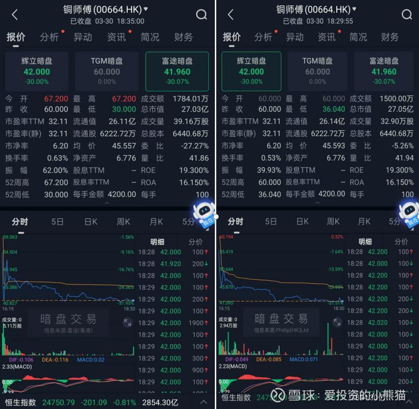 1. 再看看铜师傅(00664.HK)暗盘情况