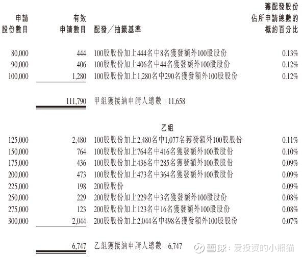 同时乙组6747人申购,其中顶头槌申购2044张,获配率0.07%-0.11%。