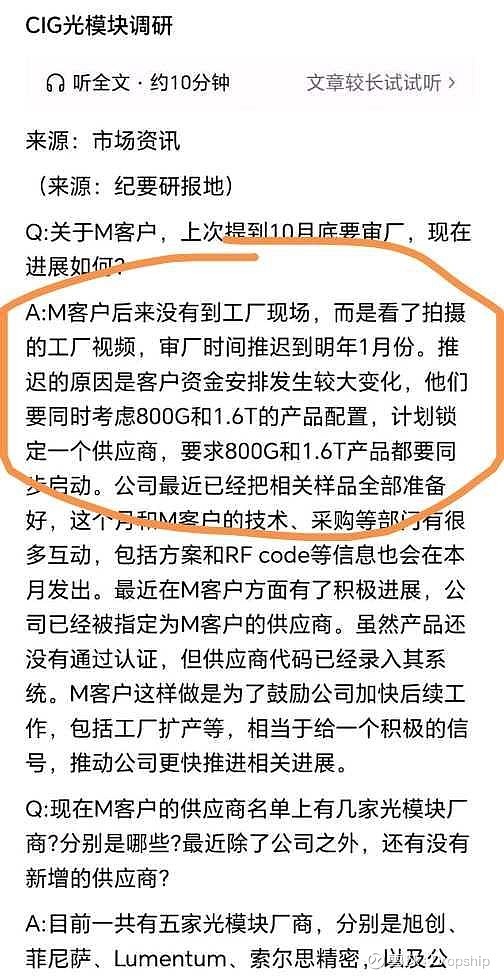 1. 今天meta传出消息,要砍掉元宇宙最高30%的预算,砍掉的预算大概率是要放到ai基建上来,这个也符合11月中下旬剑桥关于meta验厂的那段调研报告中的第一个问题表述: “客户资金安排发生较大变化,他们要同时考虑800g和1.6t的产品配置”,2025年meta元宇宙投入200亿美金,累计投入已经超过1000亿美金,按照30%的预算砍掉,每年至少60亿美金的预算可能会转到ai基建投入,这也是今天晚上meta大涨的原因,同时,按照这个逻辑,钱到位了,客户也应该是按照剑桥调研当中说的要求提高了,想直接一次性配备800g跟1.6T的产品配置,这个相对于剑桥来说是个实质性的利好,现在市面上除了中际跟xys,剑桥算是第三家能承接800g跟1.6T海外大单,同时有海外工厂的最优选择了,这个也是meta没有验厂的情况下,居然能拿到vendor code的原因,按理说,中国工厂进海外供应链都是要先验厂,通过了以后才能创建vendor code,至少我们外贸做超市类客户是这样的,之所以这样,就是为了避免出现索尔思这种情况出现,验厂通过工厂的质量体系,才能保证质量的一致稳定性,所以推测基于思科的800g跟1.6T生产跟测试经验,meta在1月份的验厂大概率是没什么问题的,同时看样跟灰度同时进行会大幅增加出货的进度,从而对业绩有更高的预期,meta预算的上升从一方面也能看到一旦验厂通过,meta的订单对于剑桥来说也是量大管饱。