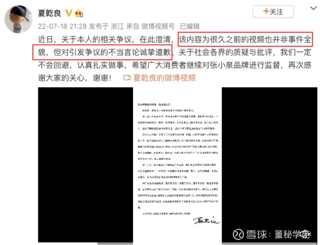 虽然后面夏乾良解释并致歉称:视频是很久之前的,并非事件全貌,但是这个事件的负面影响对公司是烙印了。