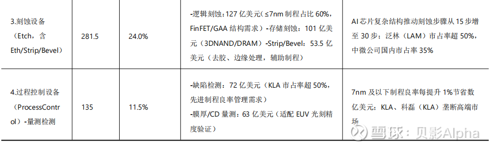 当前光刻、薄膜沉积、刻蚀被列为半导体三大工艺,对应三大设备。而量测检测以11.5%位列第四。但是在顶尖XJ制程领域,占比会有比较大变化,量测检测设备投资占比将会进入前三。
