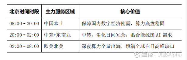 “算力基础设施24小时工作,不眠工厂”的新型商业模式,进一步放大了中国算力的成本优势与供给效率,完美适配了全球跨时区的算力需求,真正实现了穿越空间的资源优化配置。