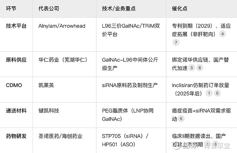随着GalNAc-L96早期专利(如WO2004094595)到期,以下企业迎来机会: