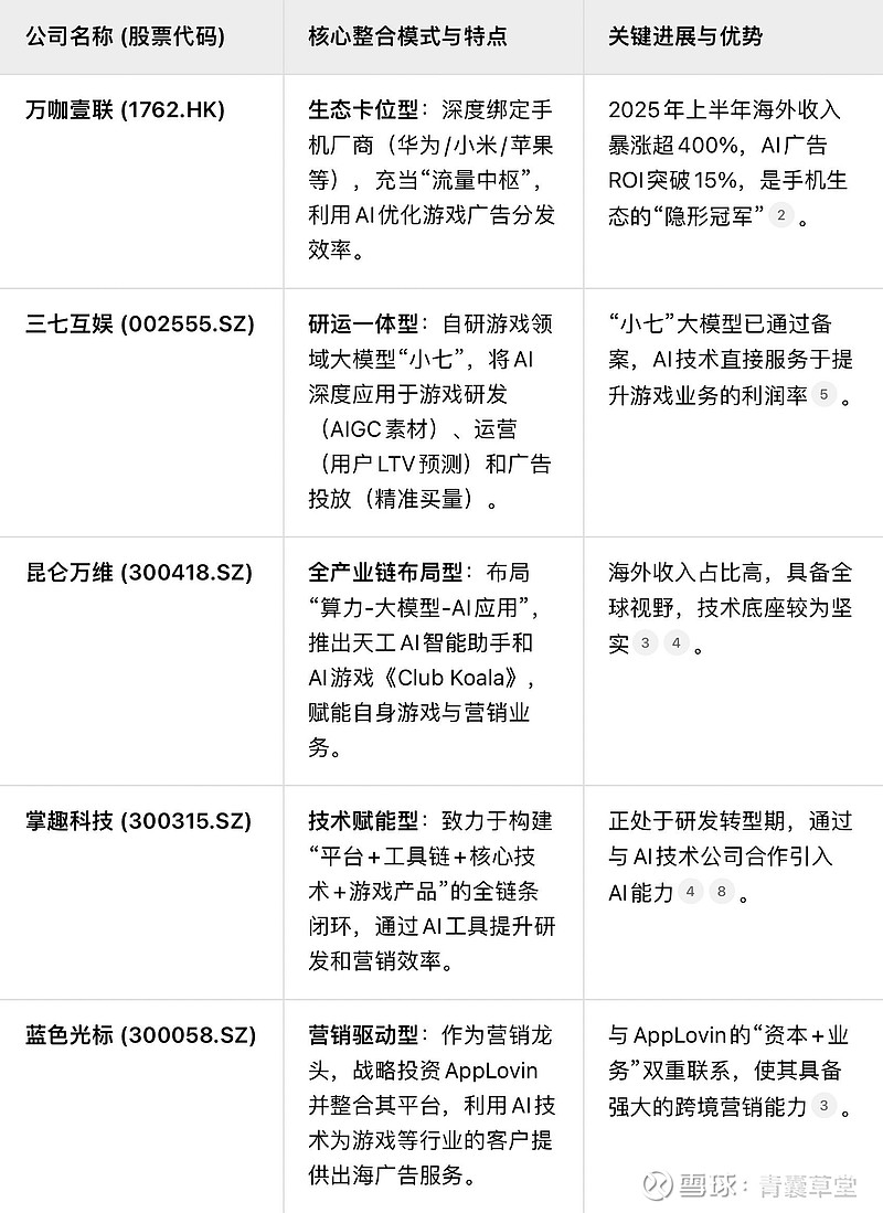 在国内资本市场中,确实有几家公司在战略上致力于将人工智能、游戏业务和广告平台进行深度整合,试图打通从技术底层到商业应用的闭环。它们各自的资源禀赋和整合路径有所不同。