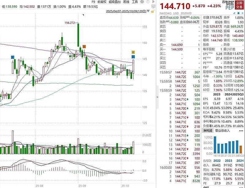 财报显示,百事公司第三季度净营收达到239.4亿美元,高于分析师平均预期的238.3亿美元。调整后每股收益同样表现亮眼,比预期高出3美分。本季度的增长主要得益于国际市场的稳健表现(占总收入的约40%)以及美国本土健康饮料品类的强劲销售势头。