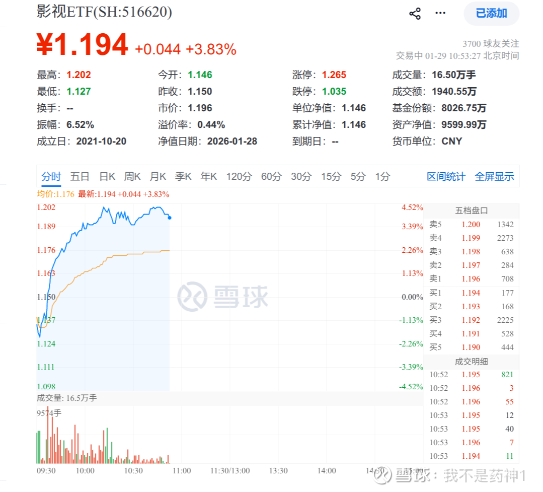 对于看好影视行业复苏与变革机遇,但又希望规避个股筛选风险和制作不确定性的投资者可借道影视ETF(516620) 布局影视板块。该基金采用完全复制法,紧密跟踪中证影视主题指数。该指数全面覆盖影视产业链上下游的上市公司,包括影视制作、发行、放映(院线)、以及电视广播、视频媒体等多个领域。这意味着,通过投资该ETF,投资者相当于一键买入一篮子影视行业龙头公司,既能分享优质内容带来的票房收益,也能受益于院线回暖、乃至AI技术对产业赋能带来的整体性成长机会。查看图片