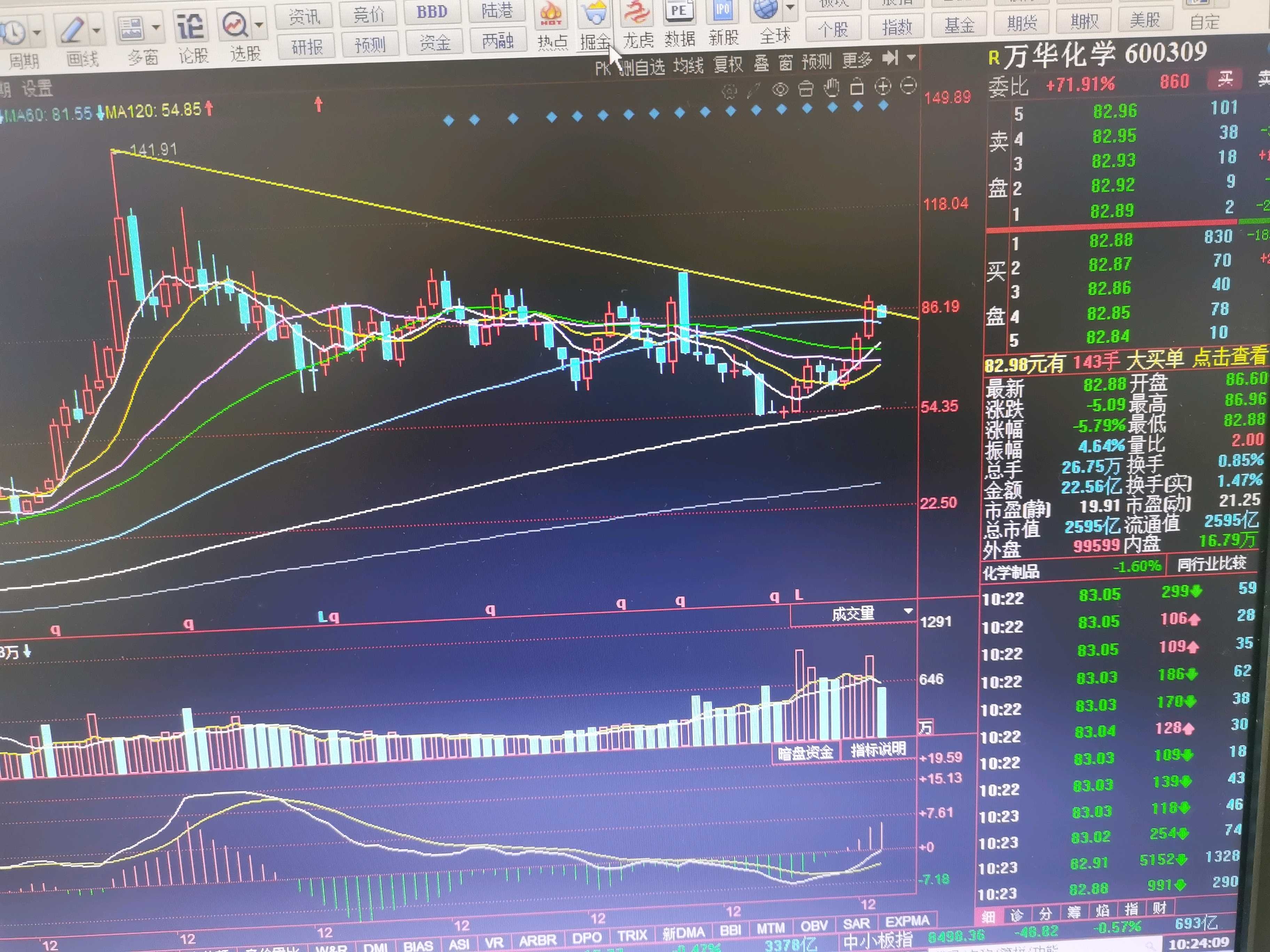 先从技术分析概率上讲,万华化学一气呵成的涨到了下降趋势的压力线,第一阶段的修复性上涨已经结束,没有只涨不跌的股票,对此应当有预判,是你自己技术分析不过硬,预期过高表现。二调整,是必然。她只是等待一个契机,没有张三来,李四来也会下跌,不用事后追寻原因。非要给一个原因的话,就是涨多了!就要跌 就这么简单。$万华化学(SH600309)$ $华泰证券(SH601688)$ $格力电器(SZ000651)$