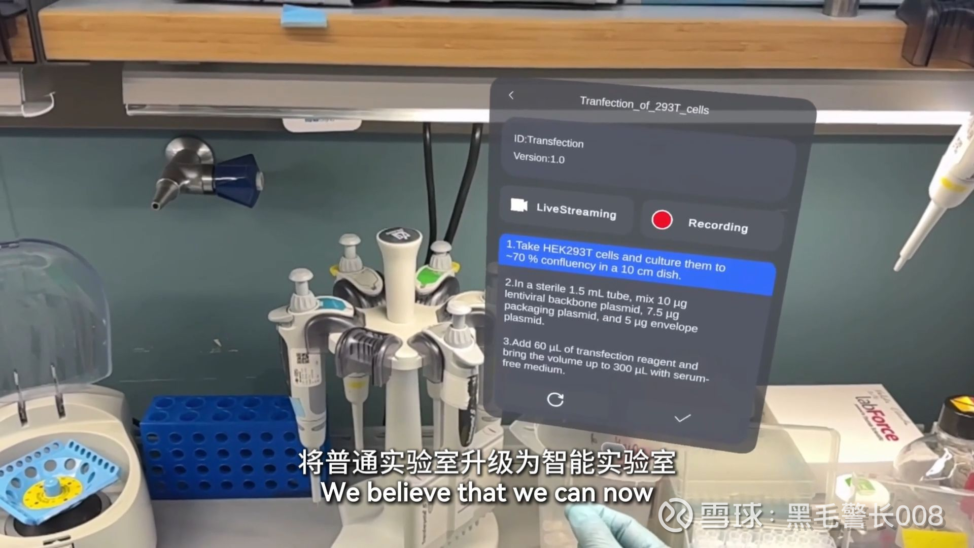VITURE和英伟达、斯坦福大学Cong Lab 合作推出的Co-Scientist系统,核心逻辑是为科学家构建一套实时XR的"AI协作层":科学家佩戴VITURE智能眼镜,AI系统通过第一视角实时感知实验场景,将分步操作指引、参数数据、实时错误检测叠加在视野中;机械臂在AI协同下执行精密操作,系统覆盖从实验模拟到过程回溯的全生命周期管理,全链路提升科研试验的效率,同时降低研究成本。