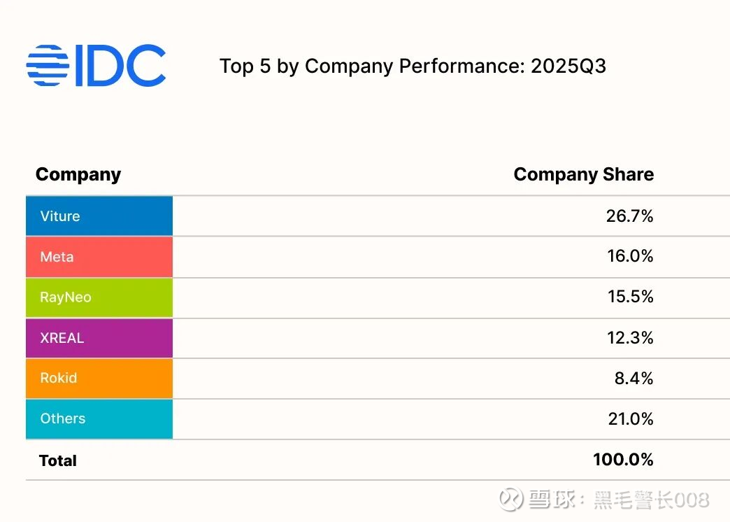 🔺IDC数据显示,VITURE以近三分之一的市场份额拿下2025年第三季度美国AR市场冠军