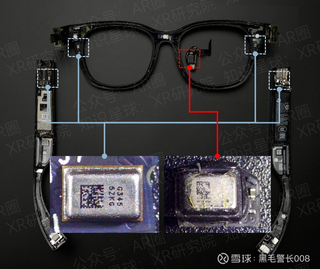 🔺小米AI眼镜搭载了5麦克风阵列,图源:AR圈