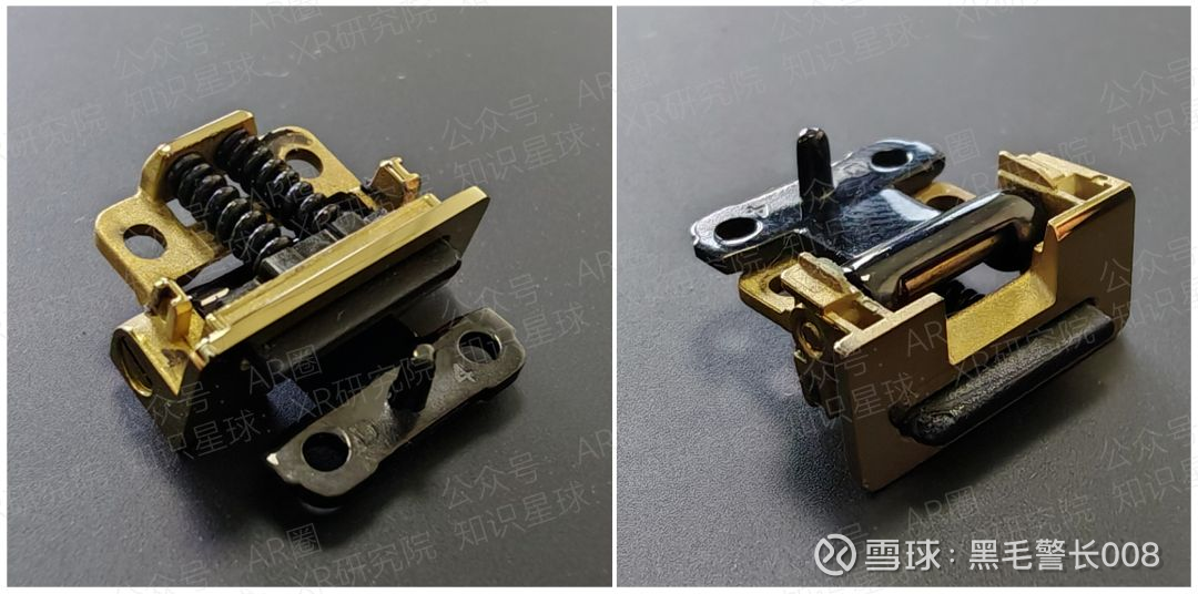 🔺小米AI眼镜搭载的钛合金铰链,图源:AR圈
