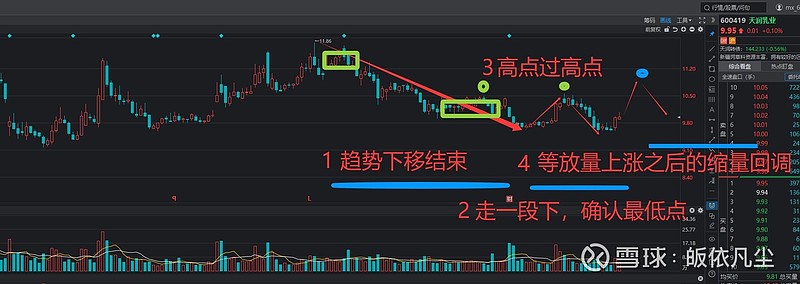 第一步,是完成一个完整的趋势下移,这个学过缠论的都懂;也就是图形的1号