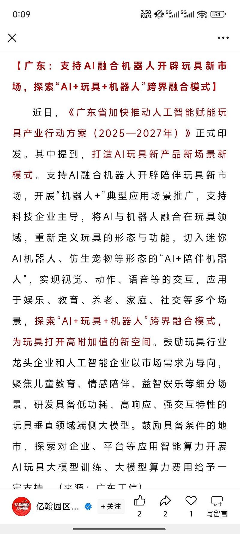 广东要打造千亿AI玩具市场,玩具智能化是大势所趋,产业政策支持,涂鸦所处的位置红利挺大的。