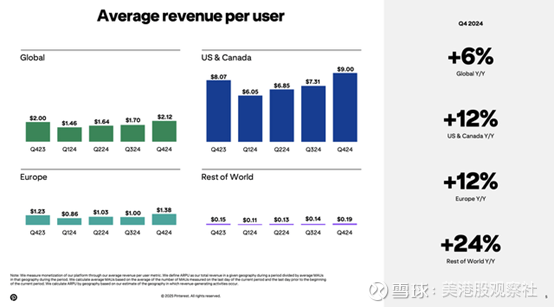社交商务方面正在带来巨大收益,公司通过与合作伙伴合作,使网站更具购物性。在重要的假日季,美国和加拿大的关键 ARPU(每用户平均收入)增长了 12%,达到 9.00 美元。