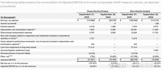 与此同时,公司调整后EBITDA亏损扩大至2160万美元,调整后EBITDA利润率为-30.8%,同比恶化640个基点。