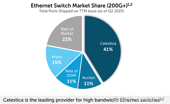 在超大规模客户定制化产品市场,天弘科技占据了55%的客户支出份额。这种在高性能产品领域的市场领先地位具有自我强化效应。随着技术迭代周期缩短、产品复杂度提升(从800G向1.6T及更高版本演进),无论是现有厂商还是新进入者,都难以匹敌天弘科技积累的技术经验与成熟的客户合作体系。