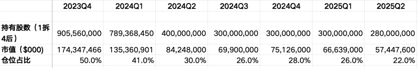 进入到今年,对苹果的退出还在持续进行中。我们可以结合2024年年底的披露情况对这笔投资迄今为止的收益做一个简化测算——