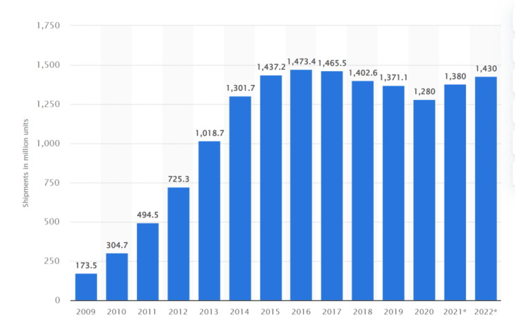 若无对苹果商业模式和产业链地位的深刻洞见,从行业自上而下的角度,其实也很难看出来投资逻辑:首先,智能手机行业出货量已经在2016年见顶;而苹果从市占率角度已经没有太多的进取空间。