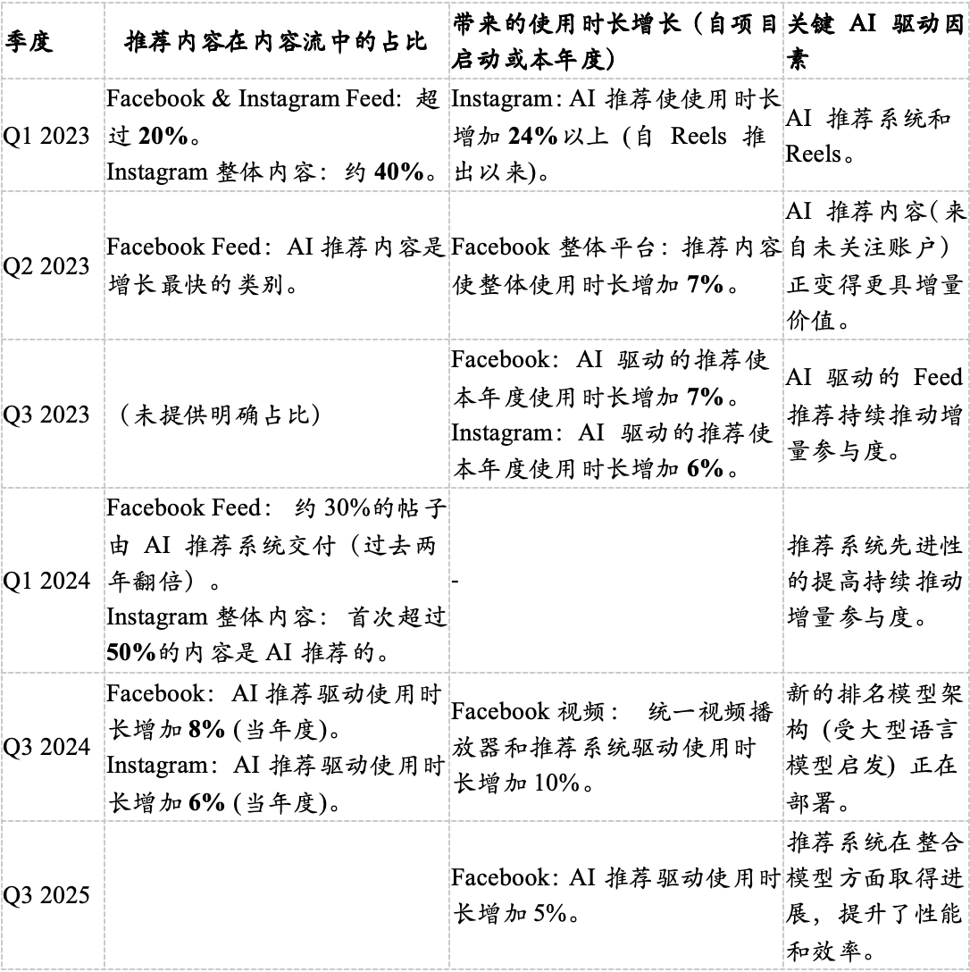 当然有点需要注意,engagement增长本身无法完全归因于AI,随着视频化内容的消费占比提升,交互的频次和理论上的广告库存也会提升。