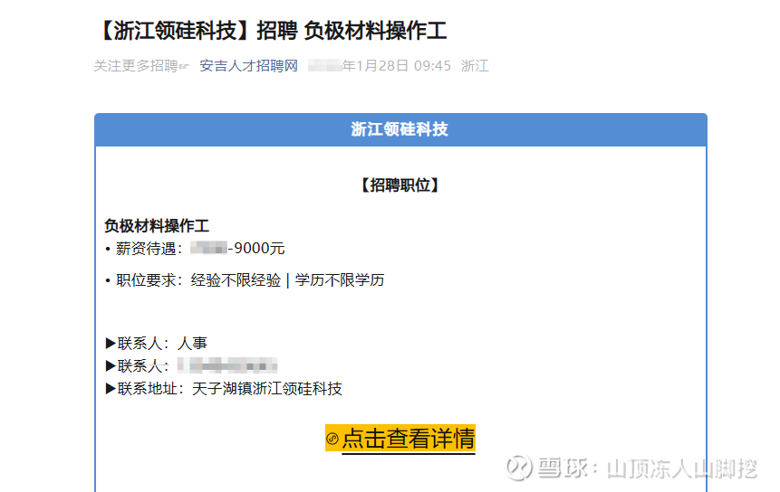 证据一是浙江领硅每周都在常态化招聘负极操作工。