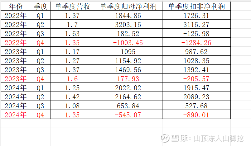 特别是扣非净利润,每年第四季度都是亏损
