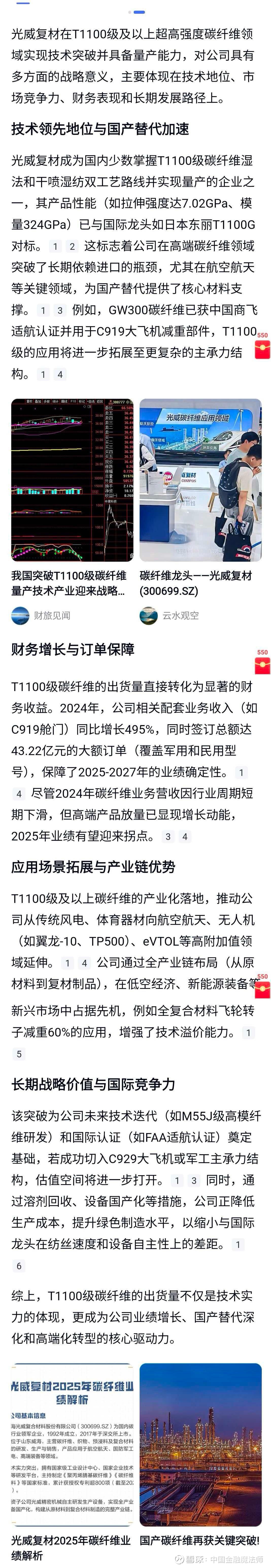 光威复材T1100级及以上超高强碳纤维技术突破并具备量产能力,开拓公司未来新高度!