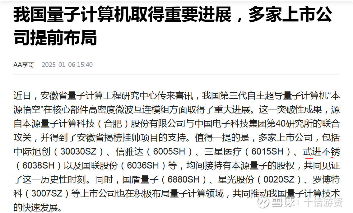 武进不锈(603878.SZ) :公司持有本源量子公司约0.036%,通过福建宣德间接参股本源量子,间接持有本源量子0.66%股权。