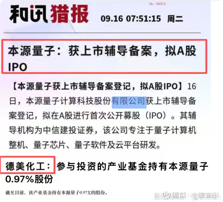 德美化工(002054.SZ) :持股比例第一,公司持有本源量子公司约0.365%