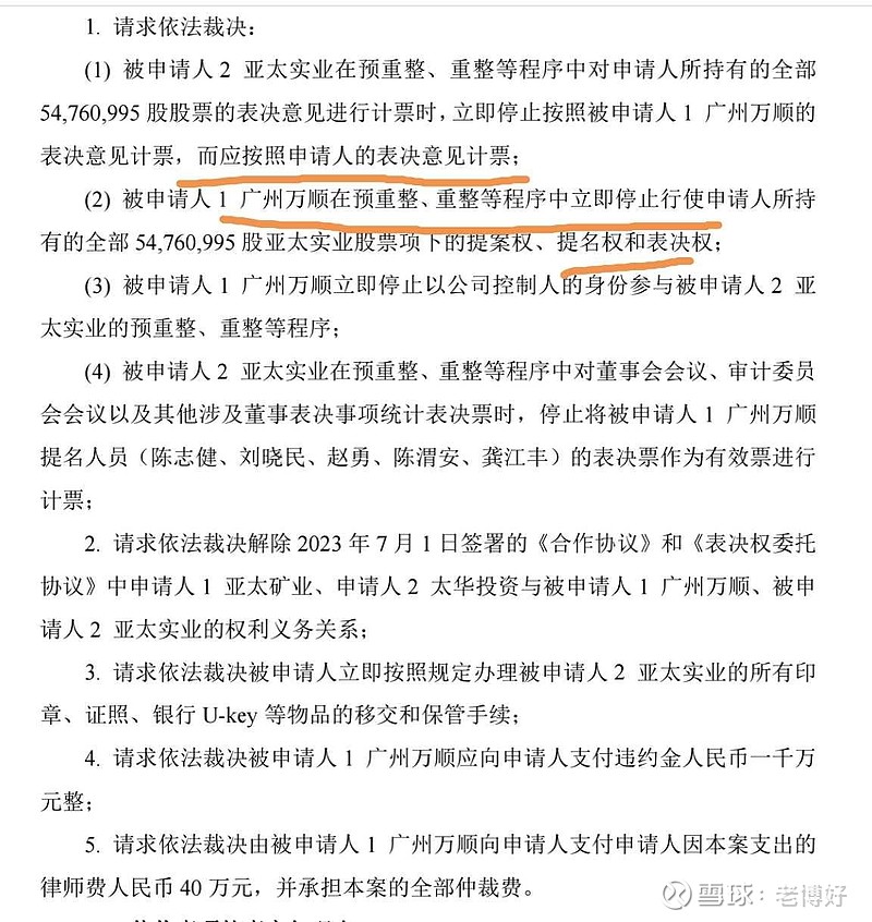 2,重整这么长时间过去了,他们不知道吗?肯定啥都知道,为何之前他不提起仲裁或者诉讼,而是现在战投遴选的关键时候,且有12家报名的时候提起仲裁!因为兰州大概率谈好了更大的战投!兰州想要更好的,所以兰州政府变心了,希望万顺让出来控股权了!极大概率是个很有吸引力的巨鳄!2023年万顺进来到现在,对亚太没有实质性变好和注入好资产,这是兰州市的不满意之处!