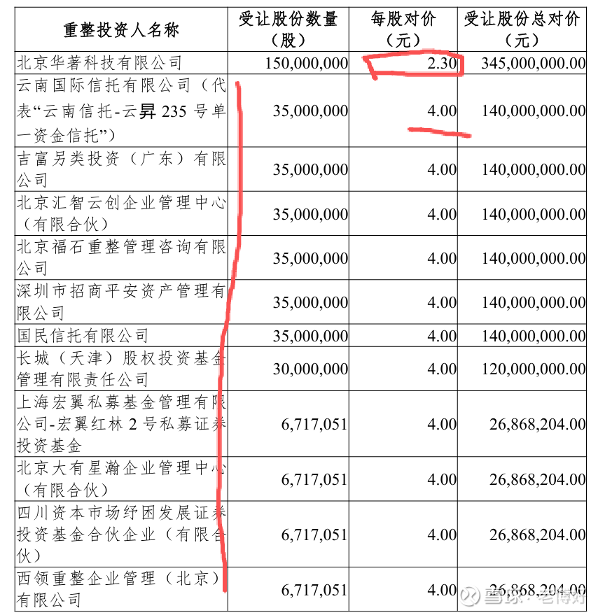 4.我粗粗整理了2025年度重整股的财务投资人入股价格,结合现在的价格,能大概有个判断(这个不能完全准确,但会提供一个新的视角)