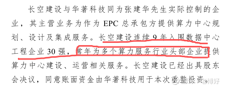 华著科技于2020 年 9 月 18 日在北京市朝阳区成立,张建华先生为华著科技的实际控制人,持股比例为 95%。华著科技作为IDC(数据中心)/AIDC(智算中 心)综合服务商,主要客户为第三方AIDC服务商,终端客户主要为头部互联网企业。华著科技及其同一实控人控制下的主体长空建设业务贯穿算力中心全产业链。