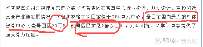 华著科技算力一号园区总计20万P(一期已经建成,二期正在建设),对比并行科技,我在算力方面估值150-200亿应该不断离谱!也就是说光算力这块资产可以保证股价为最低为15.8!