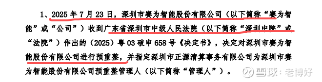 从预重整受理到马上质押给4号,只有8天,赛为老总和4号都是提前沟通好了,否则这么多钱,不可能几天就谈完。