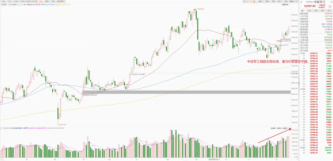 可以看出,中证军工指数走势,在震荡中上行。而其它科技方向,你若翻一下指数,很多走势是没这么丝滑。