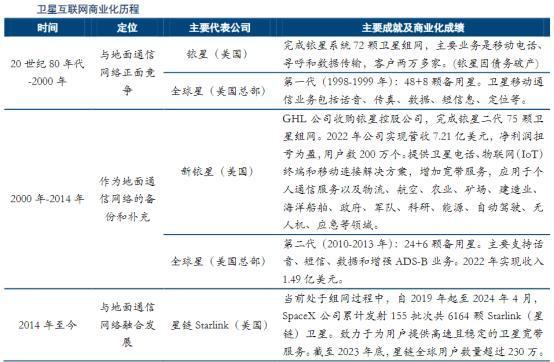 3)与地面通信网络融合阶段(2014年至今):以SpaceX等为代表的企业开始主导新型卫星互联网建设。卫星互联网建设逐渐步入宽带互联网时期,与地面通信系统进行更多的互补合作、融合发展。