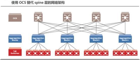 现代数据中心往往使用脊叶(spine-leaf)架构,OCS能够在脊柱层(spine层)提供稳定、大带宽直连通道的数据流,为进一步拓展数据传输性能提供了极具吸引力的方案。在传统的拓扑结构中,数据中心网络的spine层通常采用电交换机,需频繁进行电信号与光信号之间的转换。这一过程不仅消耗大量电力,还会引入显著的数据延迟,此外,若要在数据中心中部署此类架构,必须预先建设大规模的主干层,否则后续扩展将面临整体重新布线的挑战,造成高昂的资本支出。相比之下,OCS作为光电光的替代方案,能够实现更高效、更低延迟的数据传输,有助于spine层从分组交换向光转换的过渡。