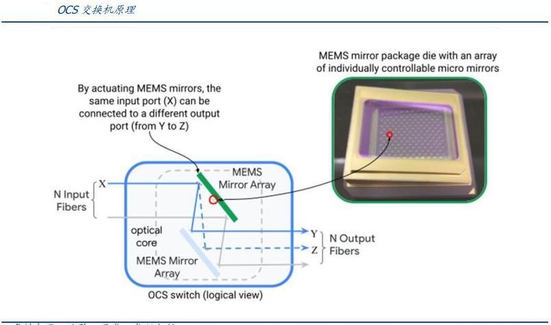 3)数据传输速率独立:数据中心如今以多种数据速率运行,电交换机的固定数据传输速率带来了巨大限制,而OCS能够以多种速率连接,能够支持更快地扩展规模,其理论交换速度可达传统电交换芯片的1000倍以上,美国能源部阿贡国家实验室和普渡大学已在实验中验证该性能指标。