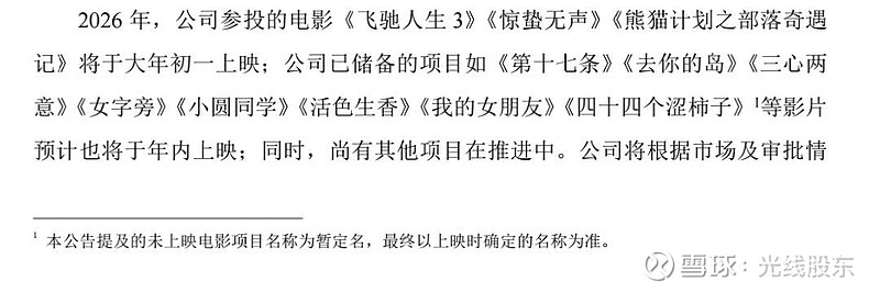 $光线传媒(SZ300251)$ 2026年,真人电影可上映项目相比去年充裕不少,这也是长田之前说2026可能是光线真人电影大年的原因。
