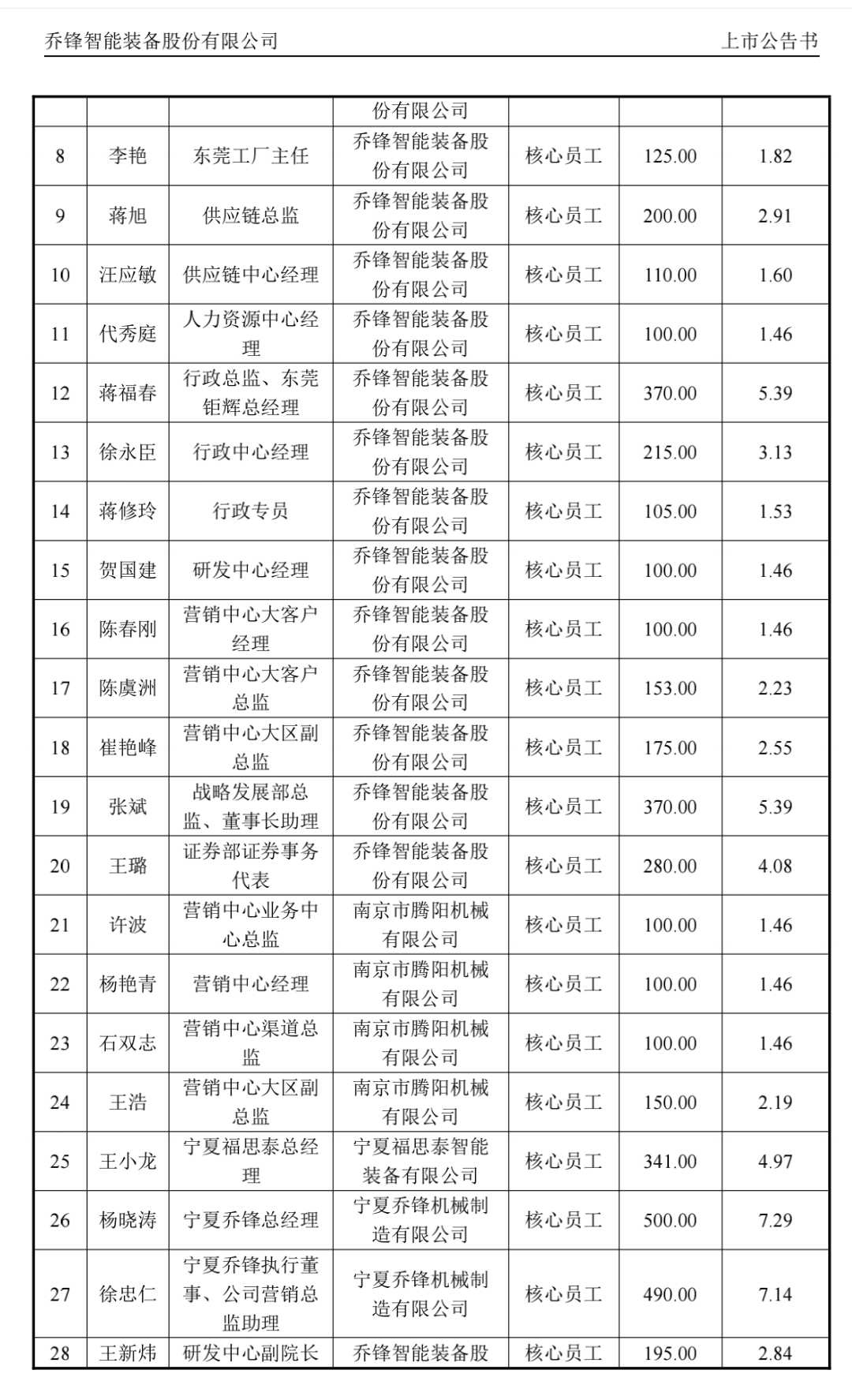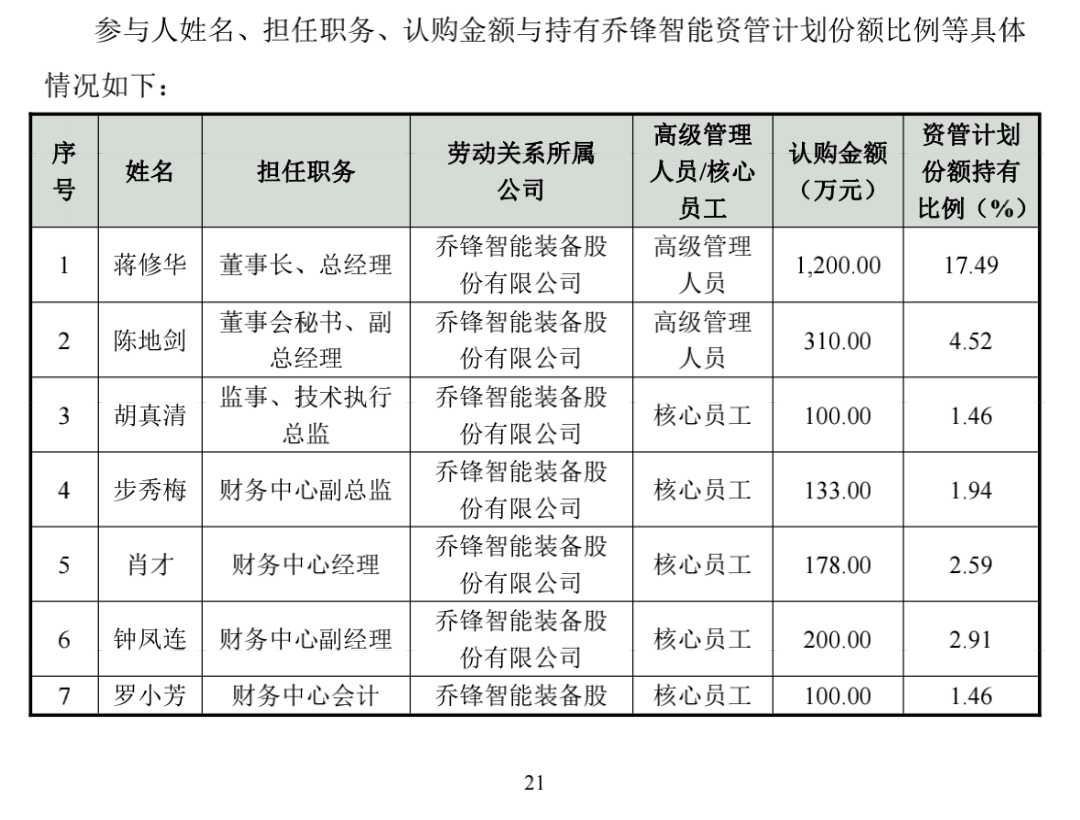乔锋智能IPO首发前就实施了两次员工计划(认购价每股4元),和首发时资管计划(认购价每股26.5)同时在7月10日解禁。