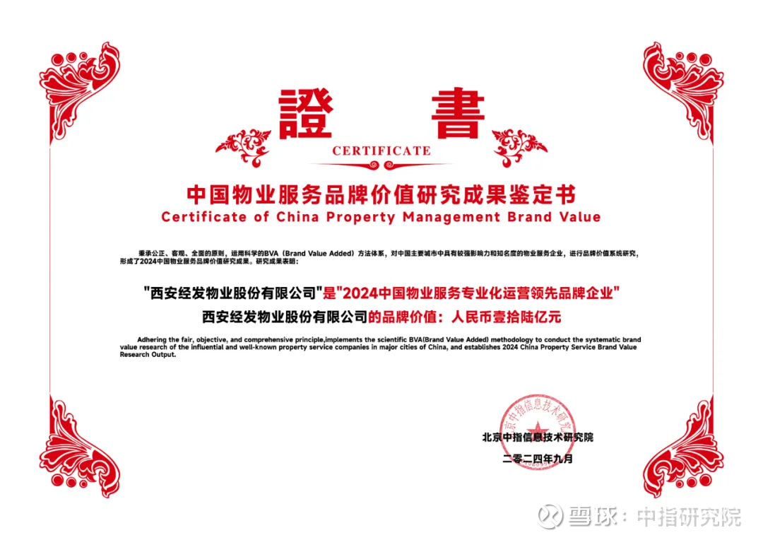 2024年9月13日,由中国企业评价协会、清华大学房地产研究所、北京中指信息技术研究院主办,北京中指信息技术研究院中国房地产TOP10研究组承办的“2024中国房地产品牌价值研究成果发布会”在雄安新区召开。