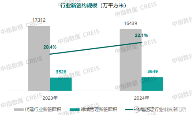 2024年,绿城管理新拓代建项目的合约总建筑面积达3649万平方米,新拓规模的市占率达到22.1%,同比增长1.7个百分点,市场占有率连续九年超20%,稳居行业第一身位。