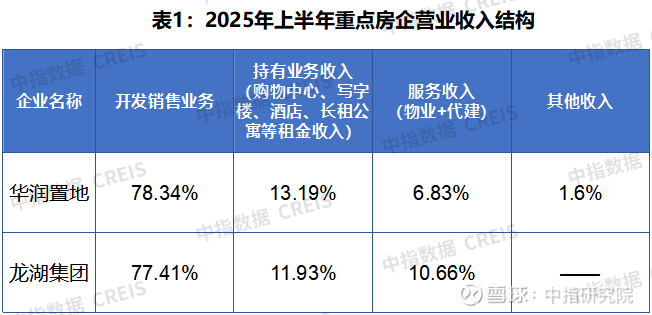 2025年上半年财报显示,在典型房企代表中,华润置地与龙湖集团展现了较强的抗周期韧性,其营收结构呈现多元化特征。从营收结构看,华润、龙湖持有物业收入和运营服务收入占比均超20%。