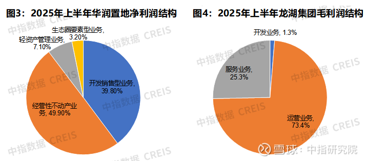 从利润贡献看,华润、龙湖非开发业务贡献超过六成的利润。2025上半年,华润置地开发销售业务贡献净利润占比为39.8%,非开发销售业务贡献净利润超过60%。龙湖集团开发销售业务贡献利润占比仅为1.3%,非开发销售业务贡献利润占比超过90%。
