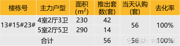 认购去化:2025年9月12日本项目推出7F精装洋房13/15/23#,共计56套,开盘认购56套,去化率100%。
